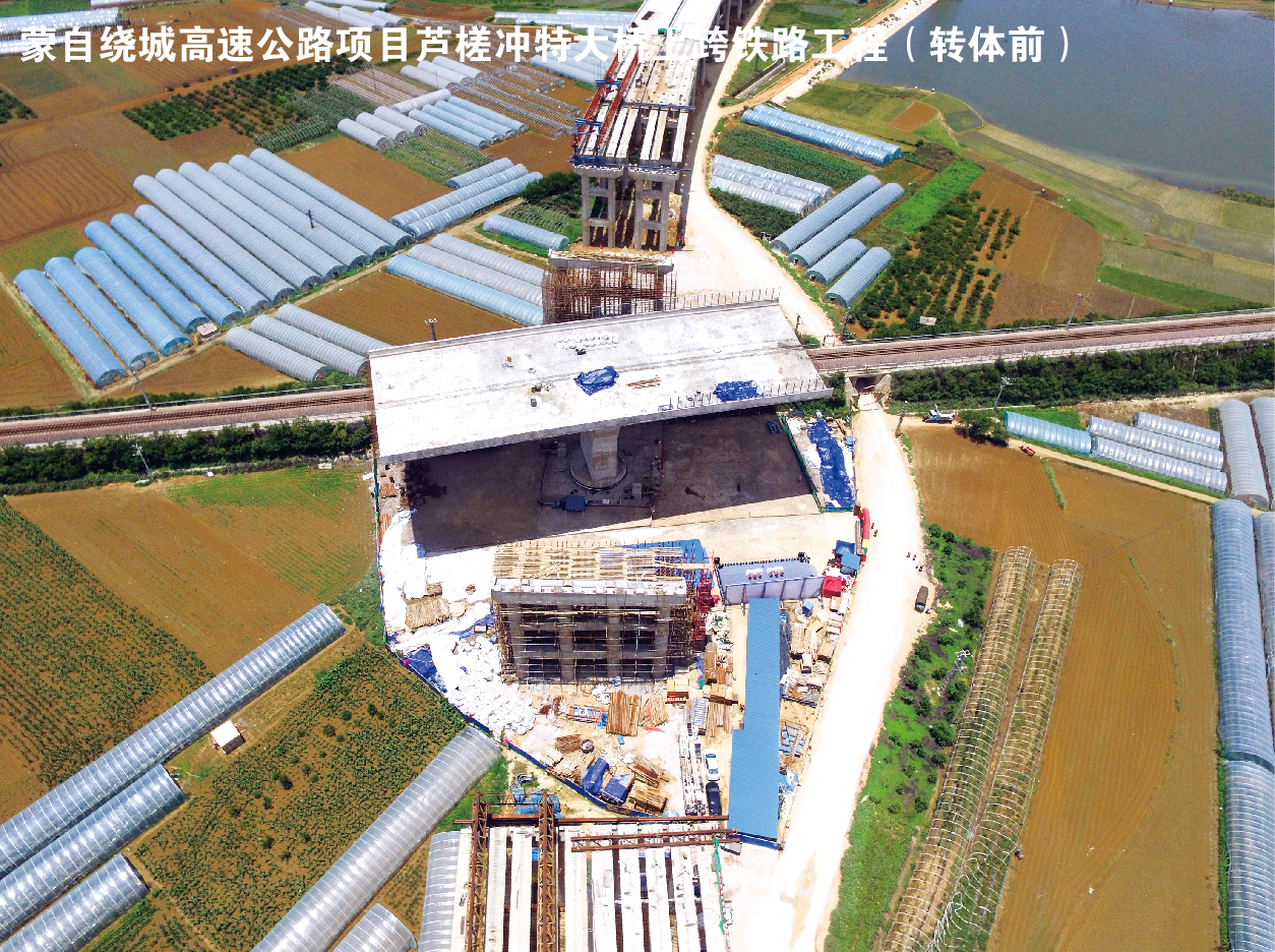 蒙自绕城高速公路项目芦槎冲特大桥上跨永利官网转体施工(转体前) 芦槎冲特大桥是蒙自绕城高速公路的控制性工程,这次施工方法属云南省首例,…